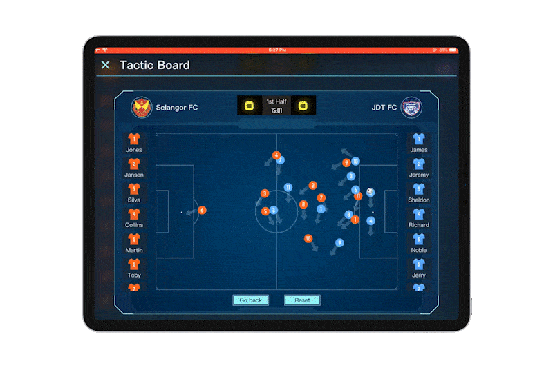 Pizarra táctica con herramientas visuales para analizar y explicar jugadas específicas